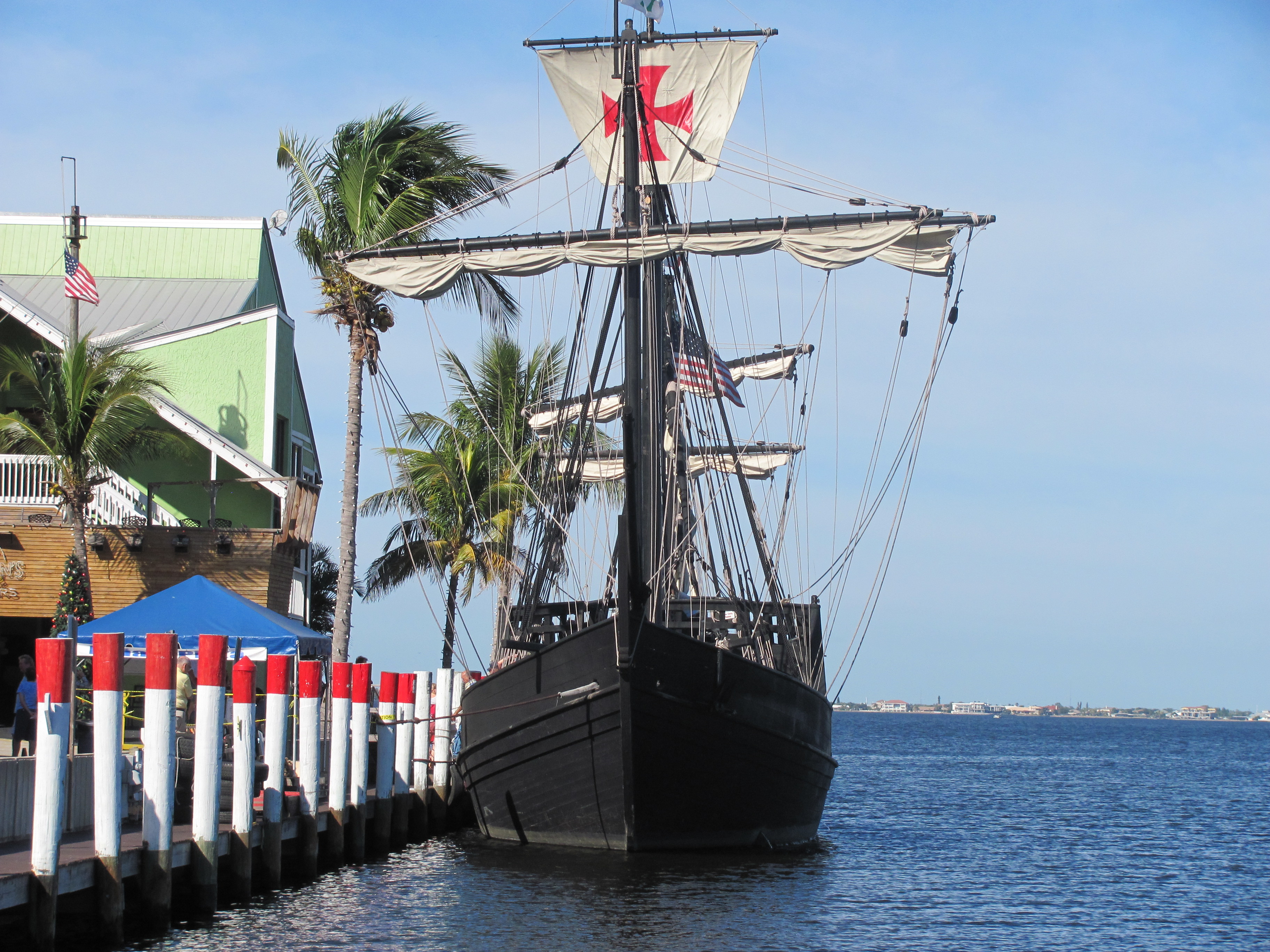 This week’s photo challenge, calls for an image that represents something unusual to me. So, I picked this photo, taken during this past holiday season. A replica of the Pinta and the Nina, (Columbus ships) sailed into town for an exhibit, and promptly anchored at Fisherman’s Village Marina in Punta Gorda, FL.