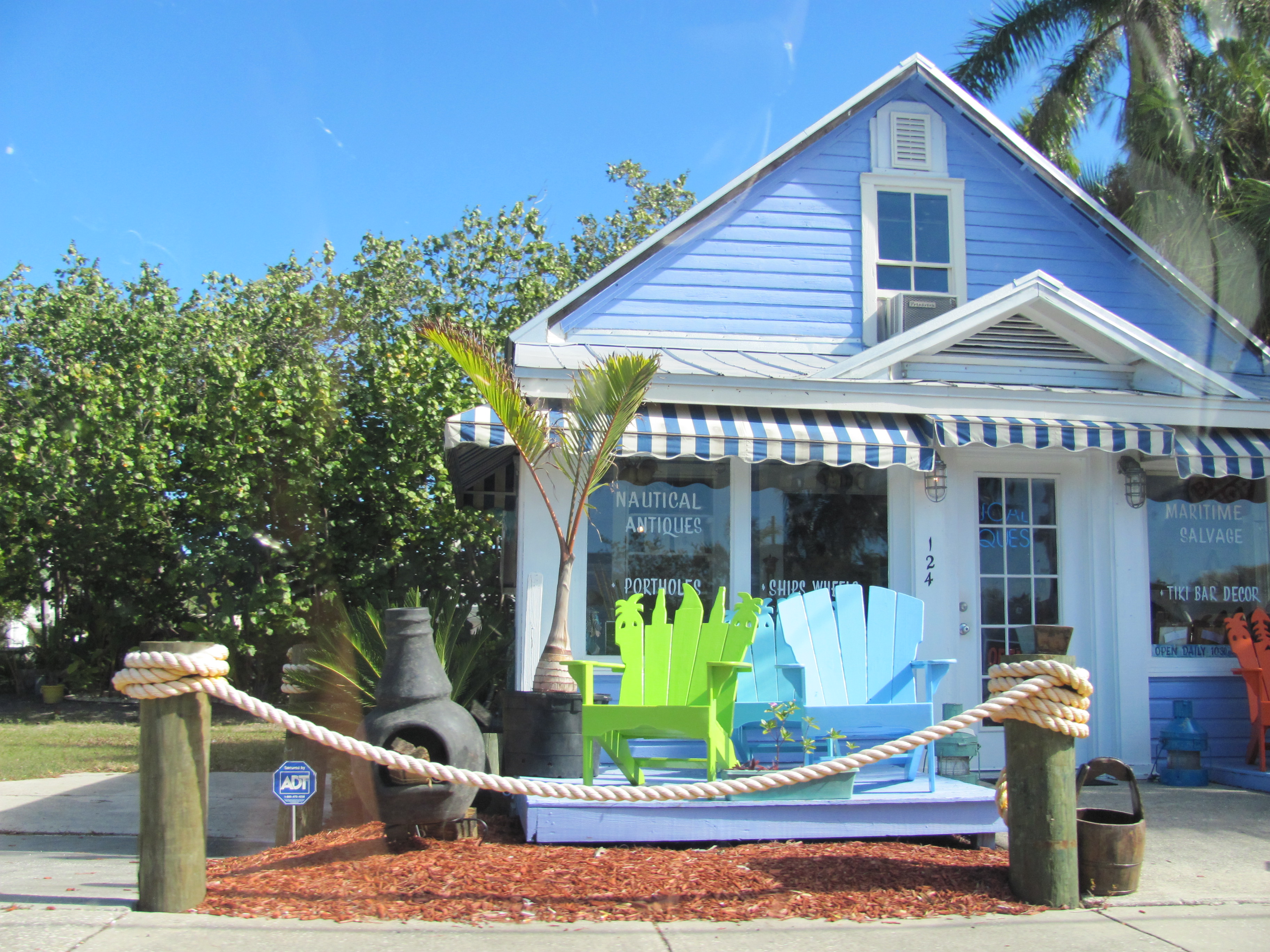 Blue house at the foot of the bridge in Punta Gorda, FL