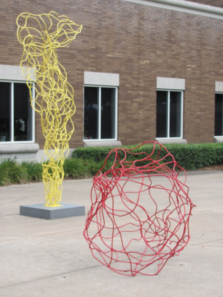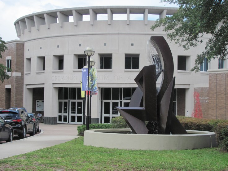 Perfect! I was wondering how to use these pictures I took a couple of weeks ago during one of my many visits to Orlando. Lately, I am on a quest to find things to do that have nothing to do with the usual (Disney, Universal) Orlando attractions. So on this weekend, we happily headed to the Orlando Museum of Art to take in the latest exhibits. Naturally, they did not allow pictures taken inside the museum, but I had enough material to keep me busy with the sculptures that adorn its entrance. And, as a bonus the “Orlando International Fringe Festival” was going on outdoors, right on the grounds of the museum. Food, art and strange sightings. Who am I to complain? LOL